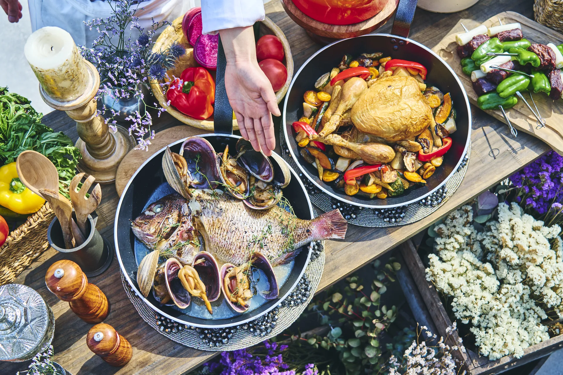 ガーデンやテラスを使ったマルシェBBQやゲストの目の前でお料理を仕上げるパフォーマンスなど、ゲストを笑顔にするお料理のおもてなしの数々―。