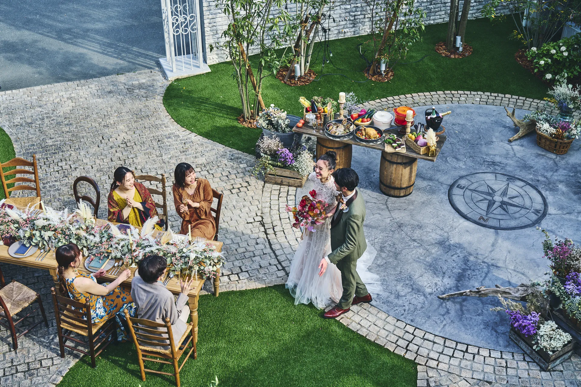 やわらかな光と緑に包まれたガーデンで、ゲストのひとりひとりと会話を楽しむ大切なひとときを。