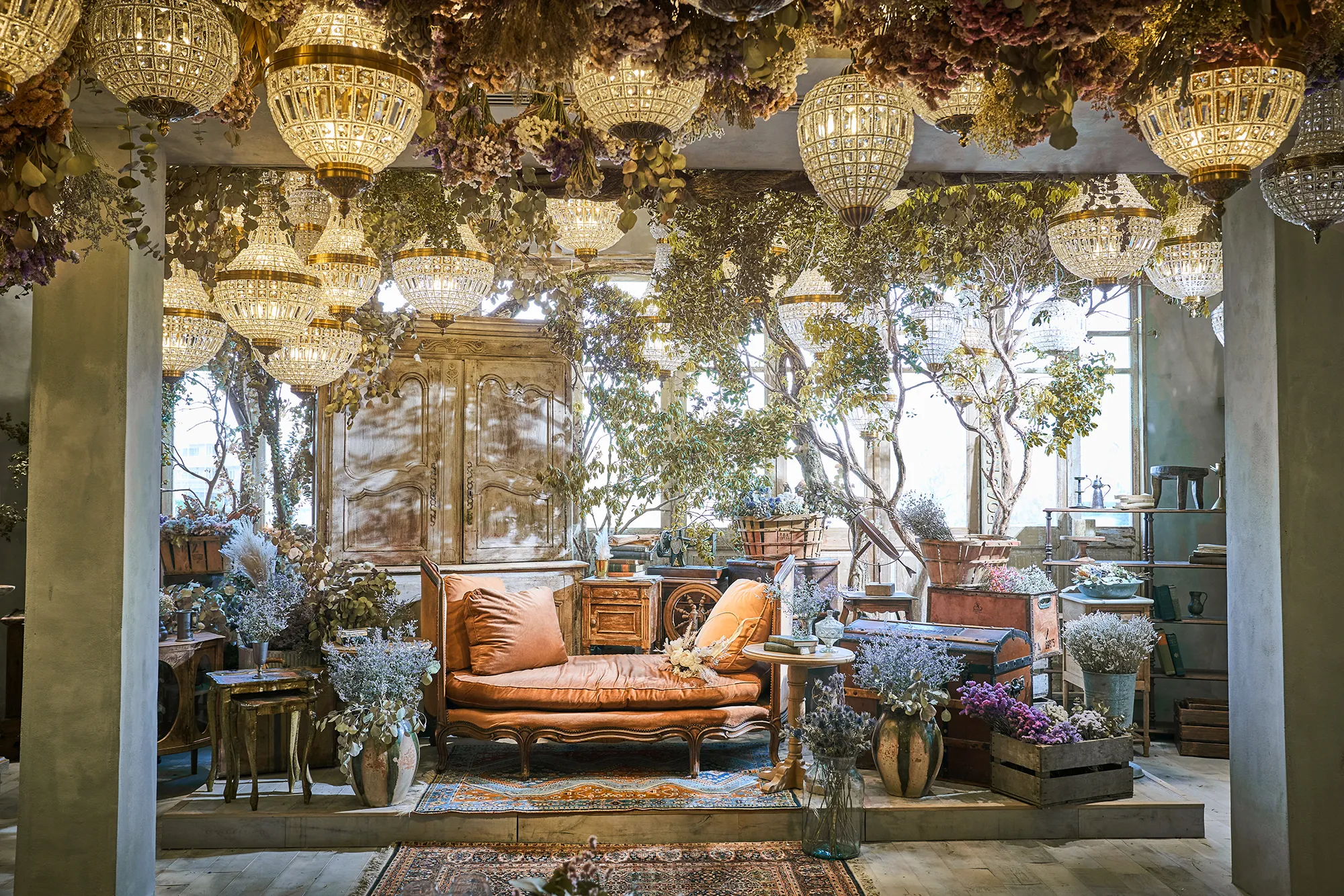 200年前のアンティーク家具、シャンデリア、永遠を意味するドライフラワーに囲まれた唯一無二の圧倒的な空間で叶える1日1組のオリジナルウェディング。