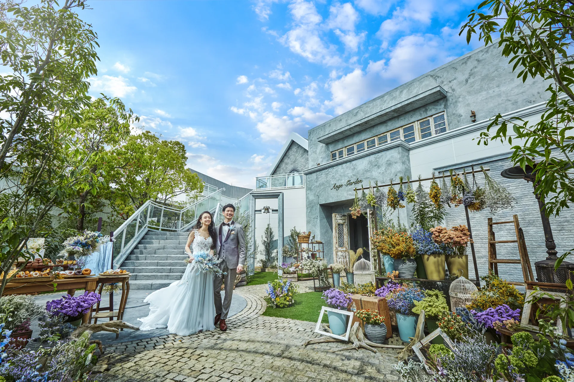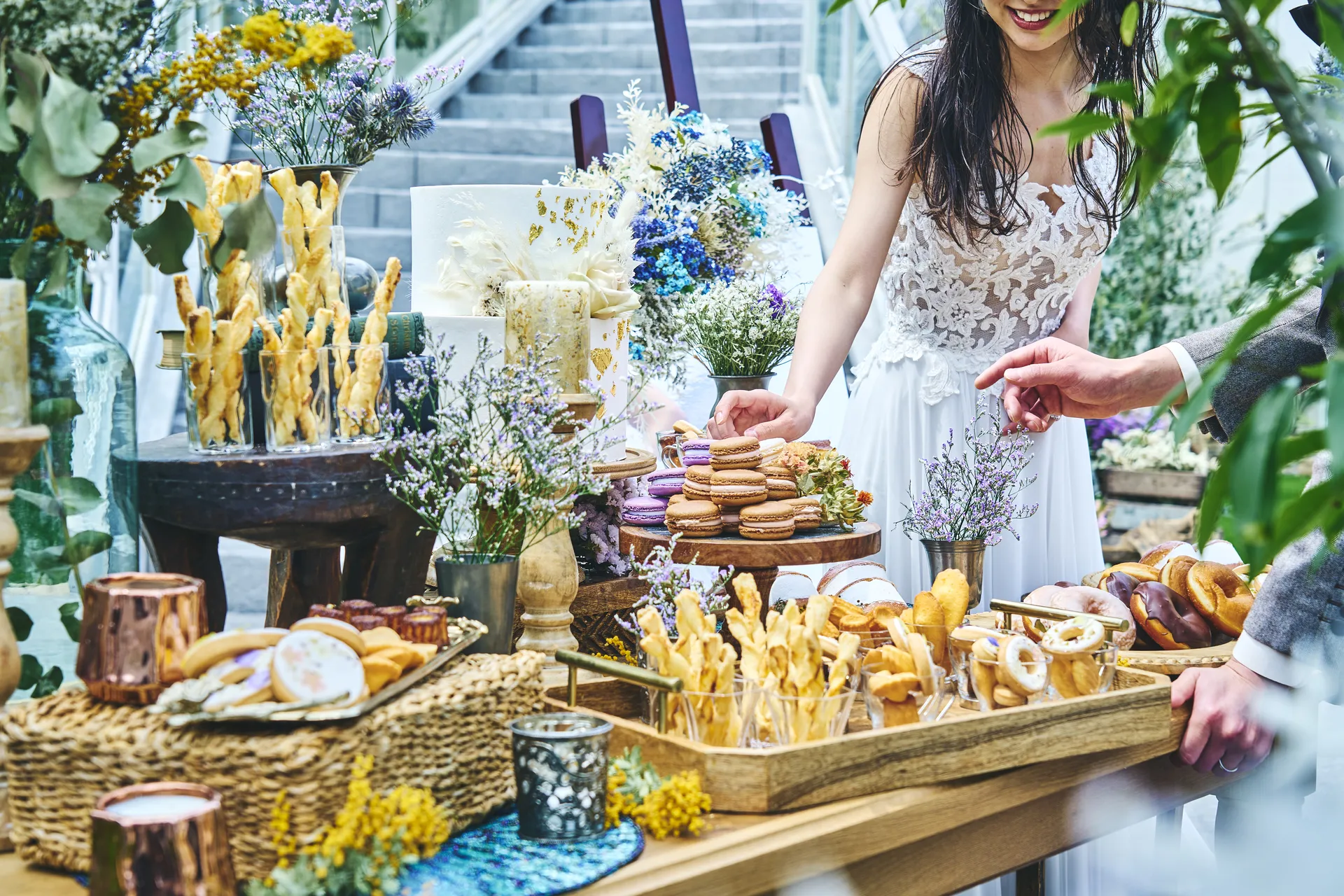 ガーデンプレパーティは披露宴の印象を左右するとても大切な時間。ガーデンでケーキカットやマルシェBBQを愉しみながら、2人もゲストもリラックスしながらお過ごしいただけます。